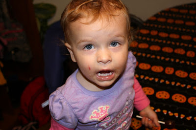 Abigail thought getting candy inside her pumpkin was pretty cool!